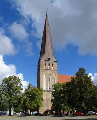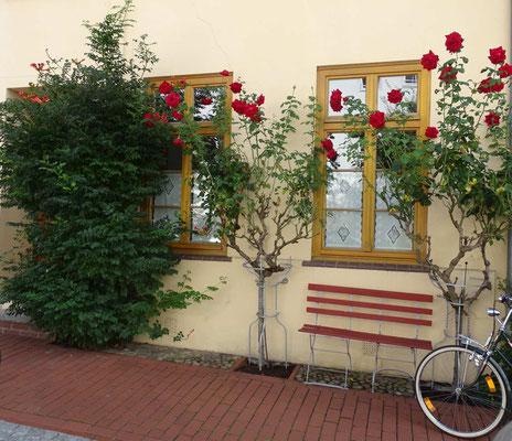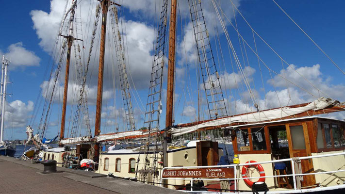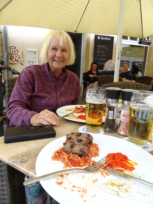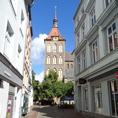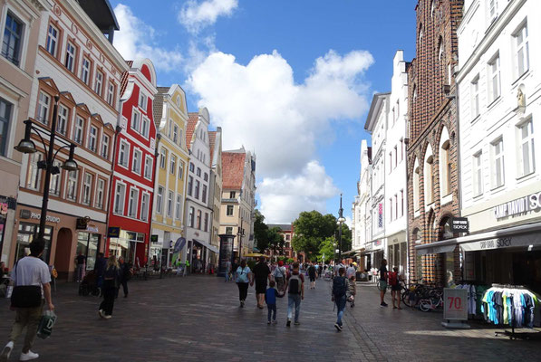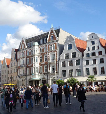 Von wegen, jetzt kommt die Pampa. An Rostock kann man doch nicht einfach vorbeifahren! Wir kennen die Stadt nur als Hafenüberfahrt nach Schweden. Jetzt wollen wir sie endlich kennenlernen. Sie beeindruckt uns mit ihren prächtigen Gebäuden und einer gemütlichen Fußgängerzone. Hier kann man herrlich bummeln und zu einem Eis einkehren. Der Womostellplatz am Stadthafen beeindruckt mit dem direkten Blick aufs Wasser, auf dem sich allerlei Segelboote präsentieren. Hier fühlen wir uns wohl, obwohl weder Ver- noch Entsorgung vorhanden ist. Den Strom liefert uns die Sonne, Trinkwasser gibts beim Lidl, Toiletten gibts in jedem Lokal.