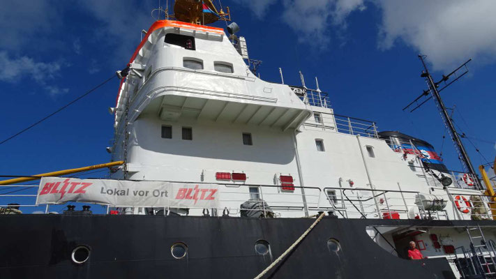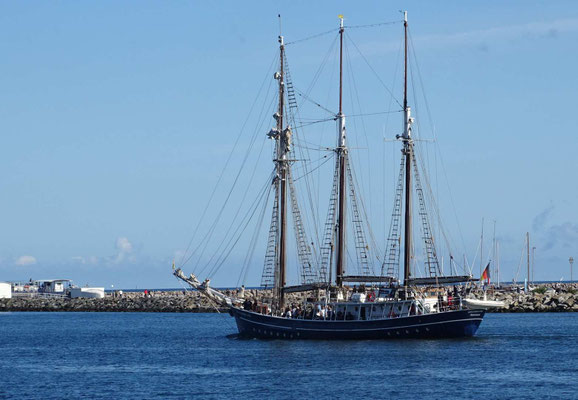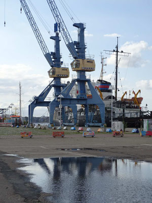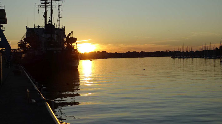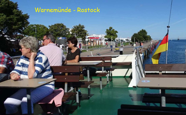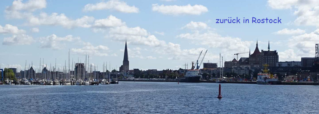 Am letzten Tag radle ich 14 km auf einem holprigen Radweg nach Warnemünde, dem Überseehafen von Rostock. Zurück gehts komfortabel mit einem Ausflugsschiff.