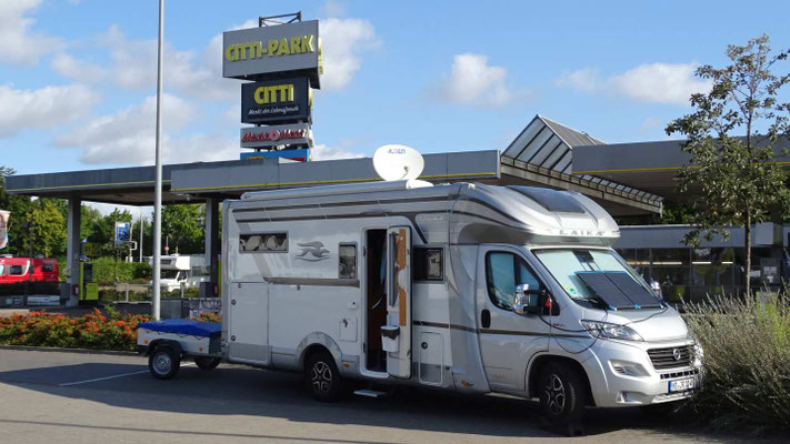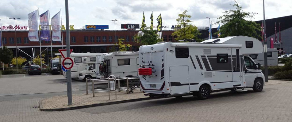 Zwei Tage Caravansalon sind allemal genug. Weiter gehts nach Norden, doch 400 km wollen mit diversen Staus abgespult werden. Jetzt taucht erst einmal ein immer lauter werdender nerviger Piepston auf, der eine offene Tür meldet, die aber geschlossen ist. In Mülheim/Ruhr finden wir eine Werkstatt, die den Schaden behebt. Eine Übernachtung im Mülheimer Großstadtdschungel verläuft ruhig und es geht weiter nach Lübeck.